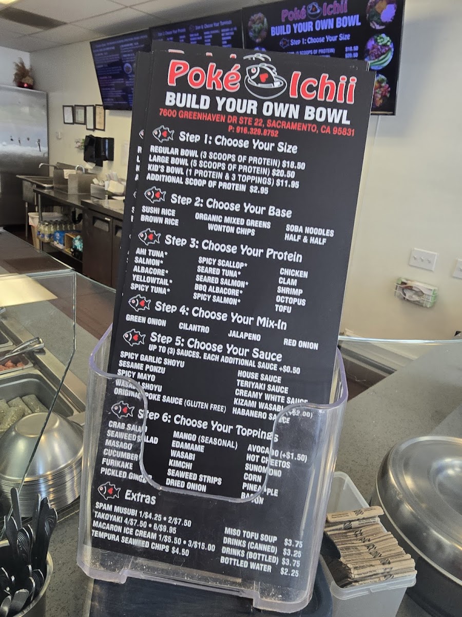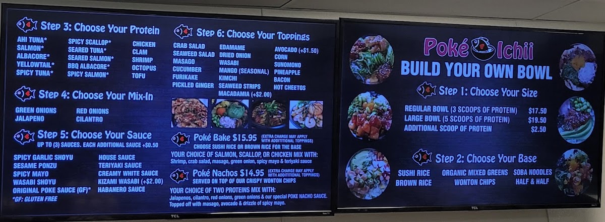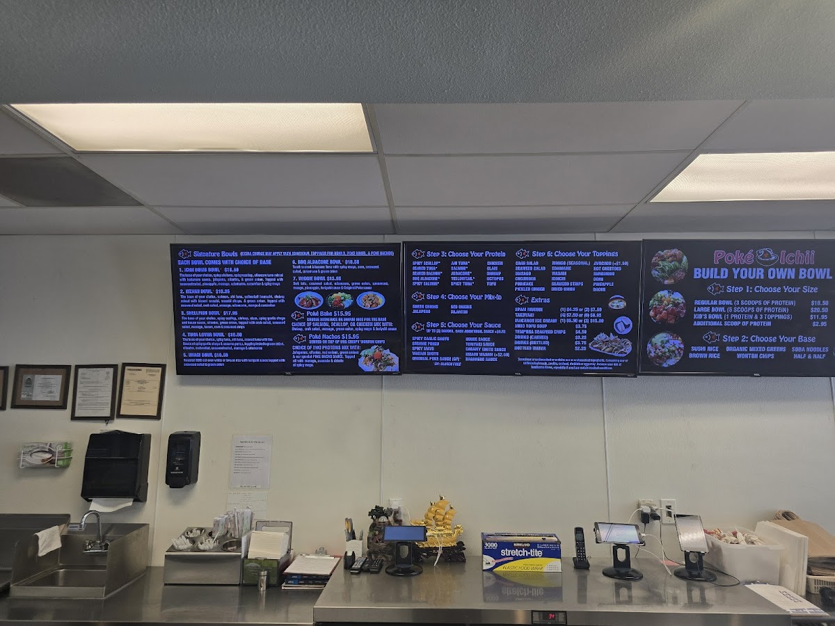 When it comes to signature bowls, diners can enjoy the savory Kizami Bowl, the crispy and satisfying Poké Nachos, or the flavorful BBQ Albacore Bowl. The Shellfish Bowl and Ichii Bomb Bowl offer an exciting selection of toppings, each designed to highlight fresh, high-quality ingredients. For those who prefer more customization, the Build Your Own Bowl offers flexibility, with both Regular Bowl and Large Bowl options to create a personalized poke experience. Whether you're in the mood for something classic or adventurous, Poke Ichii's menu promises to satisfy all tastes and preferences.